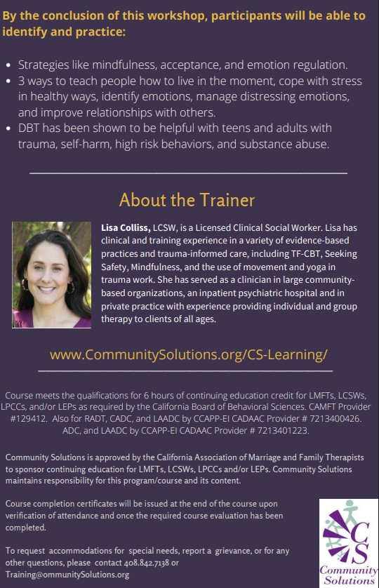 Community Solutions is approved by the California Association of Marriage and Family Therapists to sponsor continuing education for LMFTs, LCSWs, LPCCs and/or LEPs. Community Solutions maintains responsibility for this program/course and its content.