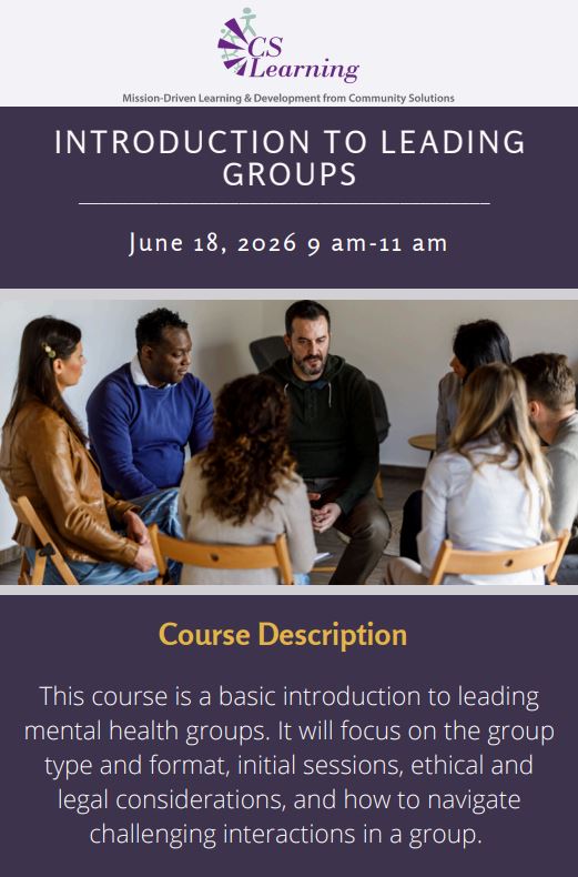 Cancellation Policy: Cancellations are requested at least 48 hours prior to the training day. Kindly email Trainings@communitysolutions.org to un-enroll from the training if you unable to attend after registration in order to receive a refund.