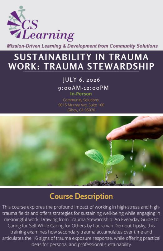 Training@communitysolutions.org or 408-846-4791
