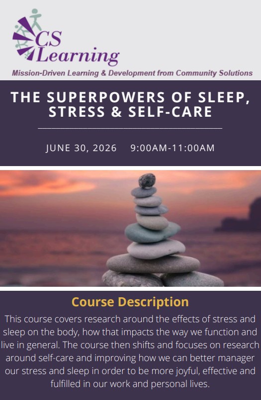This course covers research around the effects of stress and sleep on the body, how that impacts the way we function and live in general. The course then shifts and focuses on research around self-care and improving how we can better manager our stress and sleep in order to be more joyful, effective and fulfilled in our work and personal lives.