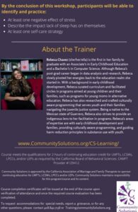 Community Solutions is approved by the California Association of Marriage and Family Therapists to sponsor continuing education for LMFTs, LCSWs, LPCCs and/or LEPs. Community Solutions maintains responsibility for this program/course and its content.