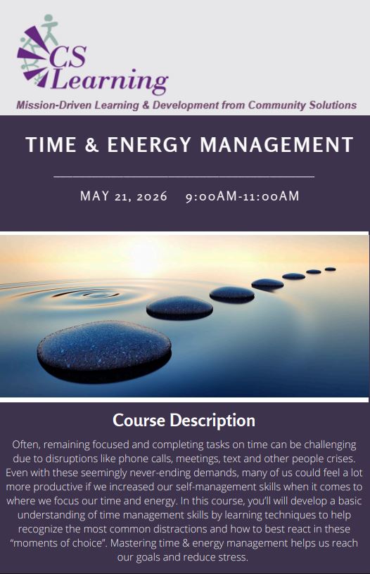 Cancelation Policy: Cancellations are requested at least 48 hours prior to the training day. Kindly email Trainings@communitysolutions.org to un-enroll from the training if you unable to attend after registration in order to receive a refund.